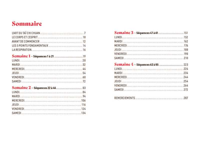 Pensé pour s’intégrer facilement à votre quotidien, ce livre décortique les mouvements du taï chi chuan, et les répartit sur 4 semaines, à raison de 10 minutes par jour.
