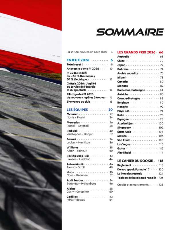 Que vous fassiez vos premiers pas dans le monde de la F1 ou que vous soyez un habitué des circuits, Le Guide 2026 de la Formule 1 vous sera indispensable pour profiter de cette nouvelle saison qui va révolutionner la F1 !