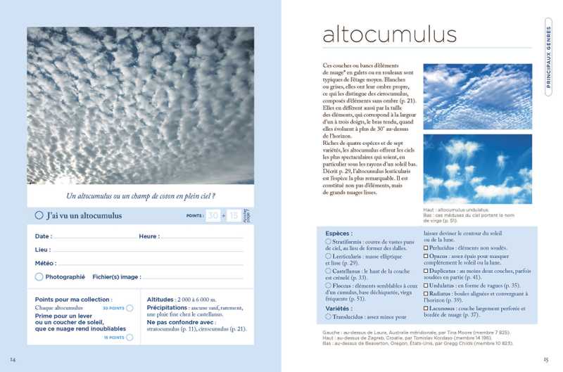 46 nuages différents sont décrits, photographiés… et notés, de sorte que vous